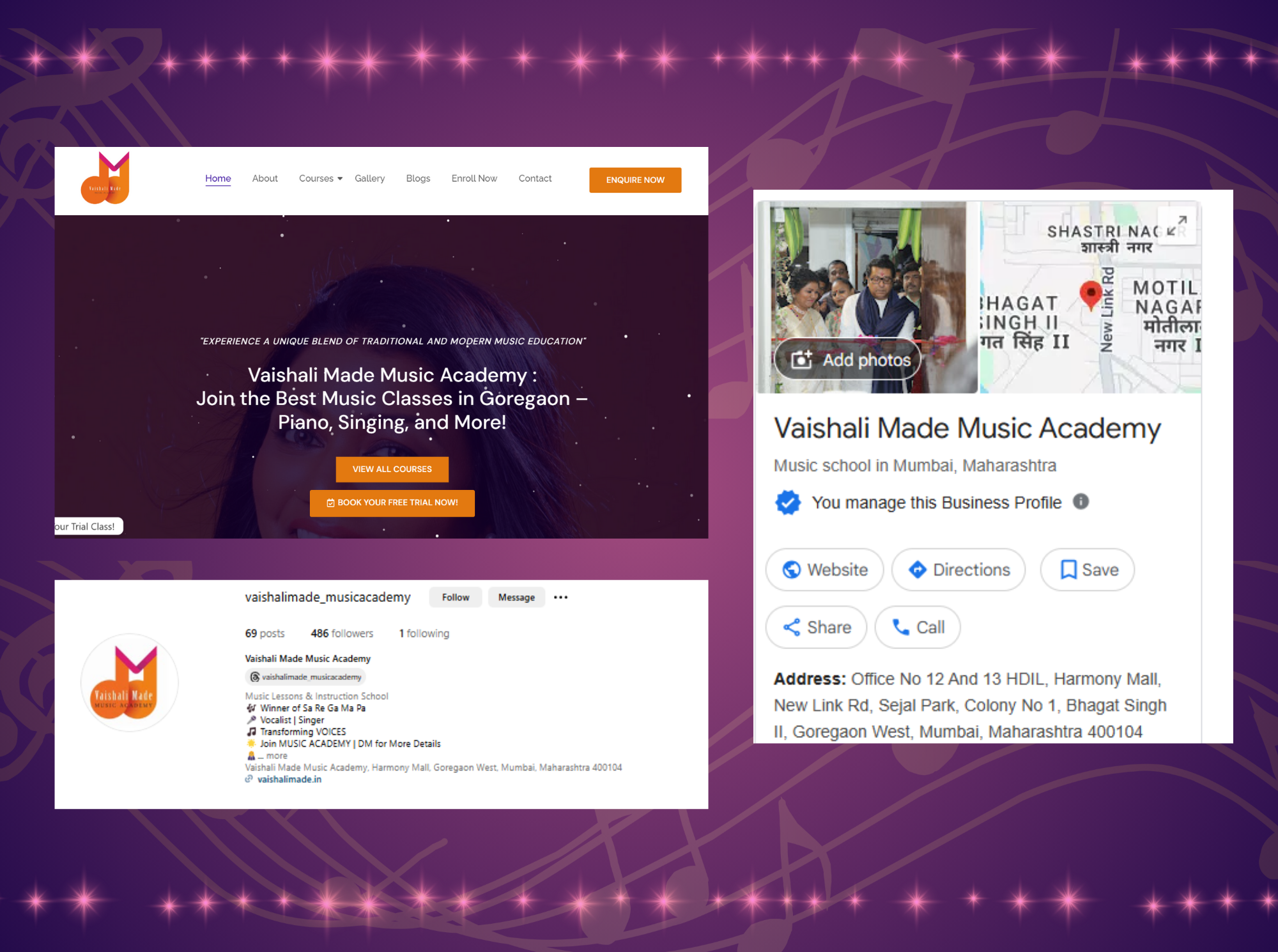SEO-optimized Website with inquiry forms, demo class booking, and WhatsApp integration